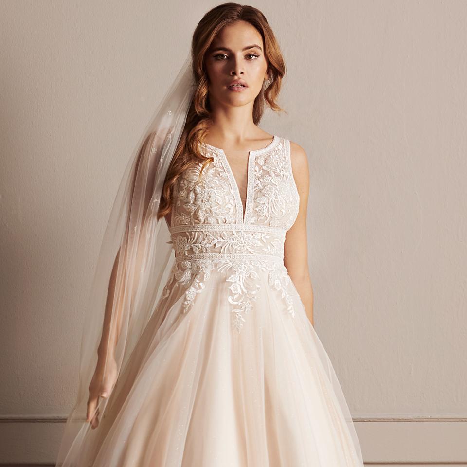 LILLY brudekjole i Blush - En drøm af tyl, glimmer og blonder
