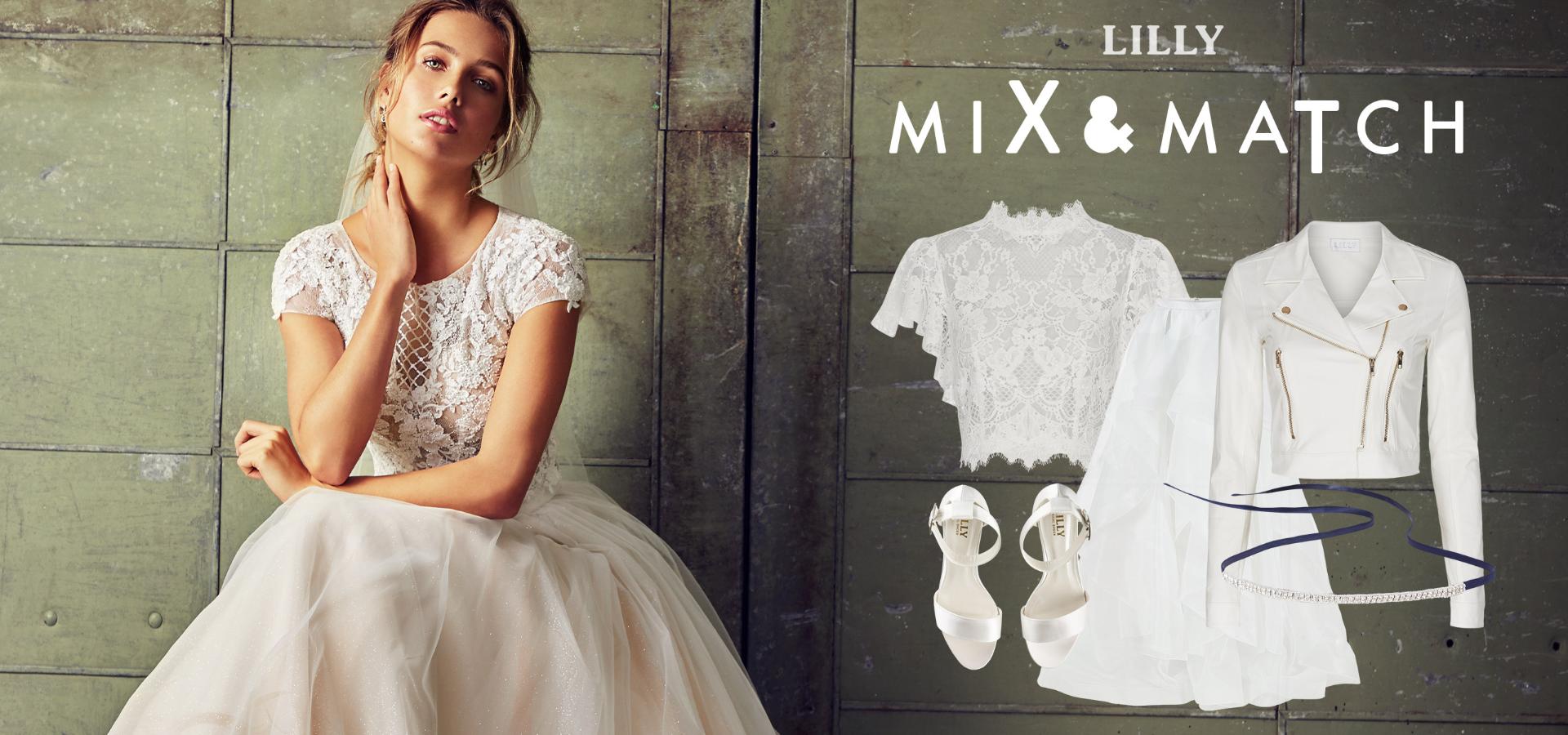 Opdag vores store udvalg af individuelle og kreative brudetoppe og nederdele fra kollektionen MIX & MATCH by LILLY.