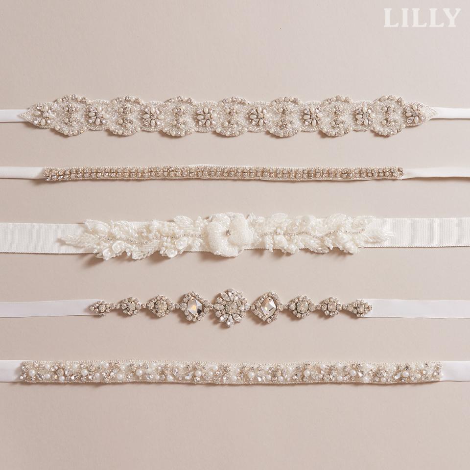 Sart broderede bælter fremhæver din talje og feminine figur. Vælg mellem masser af bling eller fine 3D blomster motiver, enkle simili bånd eller taljebånd med farver.