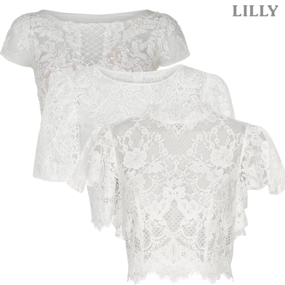 I Mix & Match brudekollektionen er de smukke blonde toppe MUST HAVE - men hvis det transparente look er lige friskt nok til dig - så kombinér med en fin undertoppe med dyb V-udskæring.