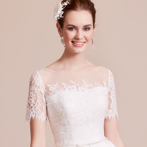 Hvis du har valgt en stropløs brudekjole, men ønsker at dække dine arme eller ryg, er filigrane blonde-toppe det helt rigtige valg til at fuldende brudekjole-stylingen. Stropper med blonde applikationer, illusions udskæringer og flotte rygge - er vidunderlige "eyecatchers".