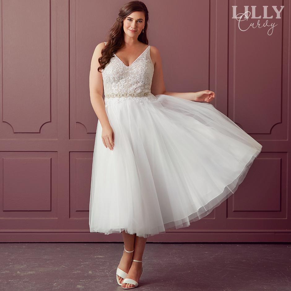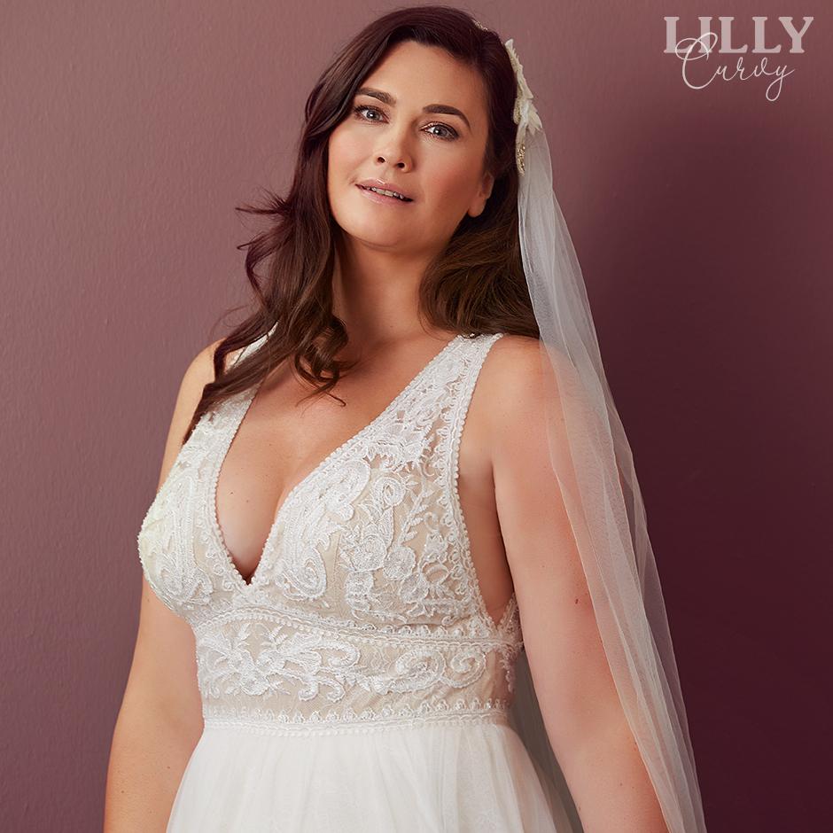 I vores Curvy-afdeling hos LILLY i Vejle har vi det største udvalg af plussize brudekjoler i str. 46-54, som du kan prøve med det samme. Forskellige udskæringer, stof og snit - du får mulighed for at prøve det hele og derved komme et skridt nærmere på drømmebrylluppet.