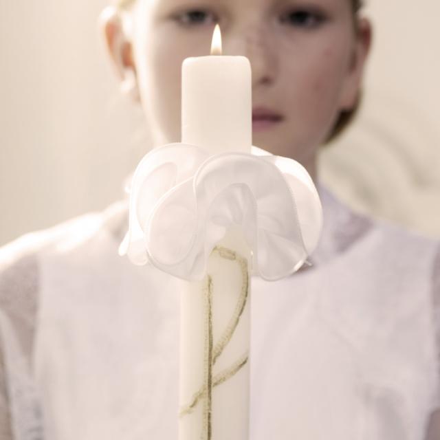 Kommunionbørnene medbringer deres eget personlige kommunion stearinlys (mange laver og smykker det selv) og hvert barns lys tændes ved kirkens påske lys i løbet af den kirkelige handling. Det er en meget betydningsfuld handling, hvor lysets flamme symboliserer, at barnet nu træder med ind i lyset.
